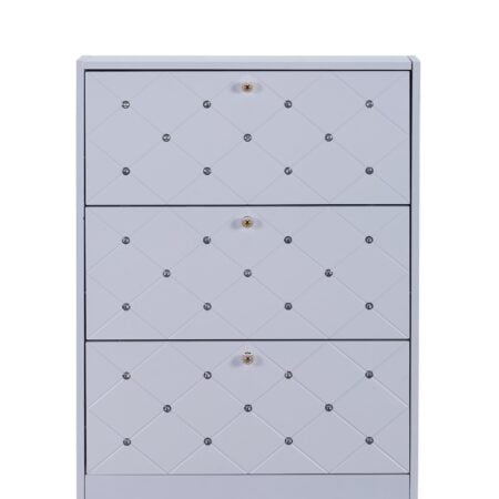 €300.00 – €330.00Plage de prix : €300.00 à €330.00MEUBLE À CHAUSSURES EN STRASS 3 PORTES BLANC 110x17x80cm