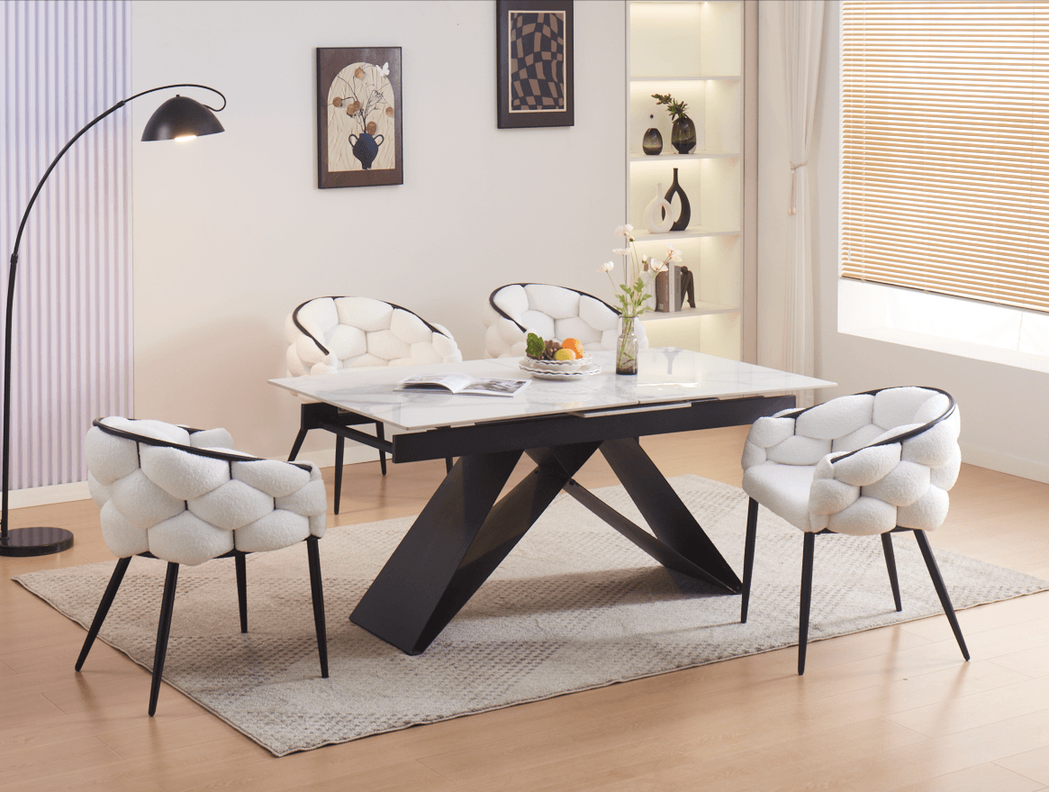 TABLE REPAS EXTENSIBLE GARCIA METAL NOIR MARBRE BLANC 160 x 90 / 200 x 90